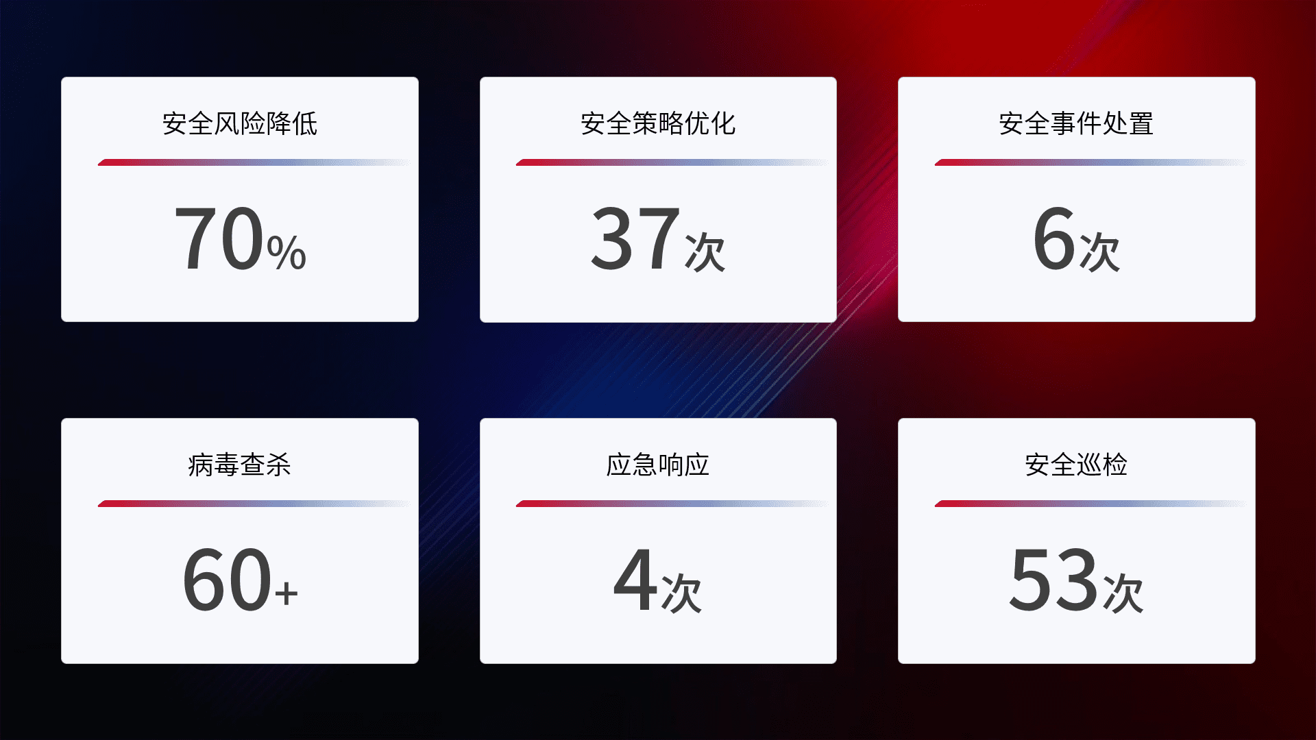 综合报告与文档服务: 定期提供安全事件处置报告、、、周/季度总结报告和年度总结报告;详尽的文档服务可帮助客户了解网络安全状况,,支持决策制定和流程优化。。。